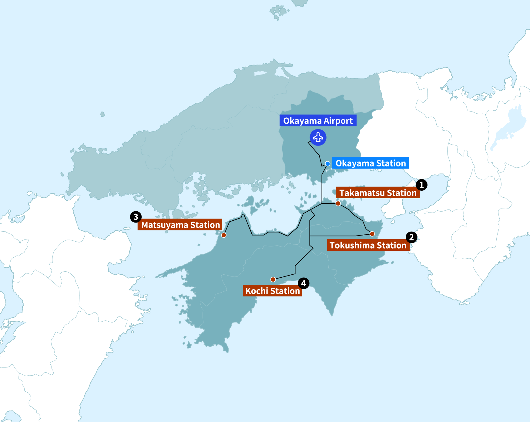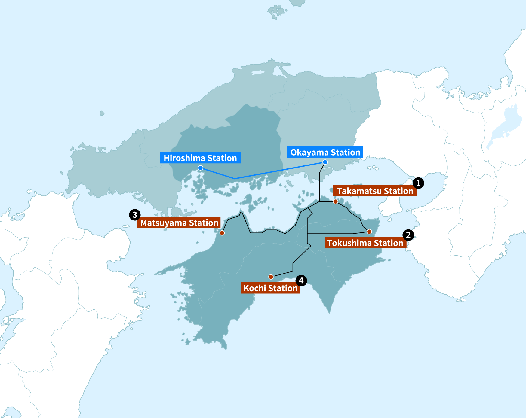 ALL SHIKOKU Rail Pass is available at JR Shikoku Tour Takamatsu branch (JR Shikoku Travel Service Center) and Takamatsu Station.