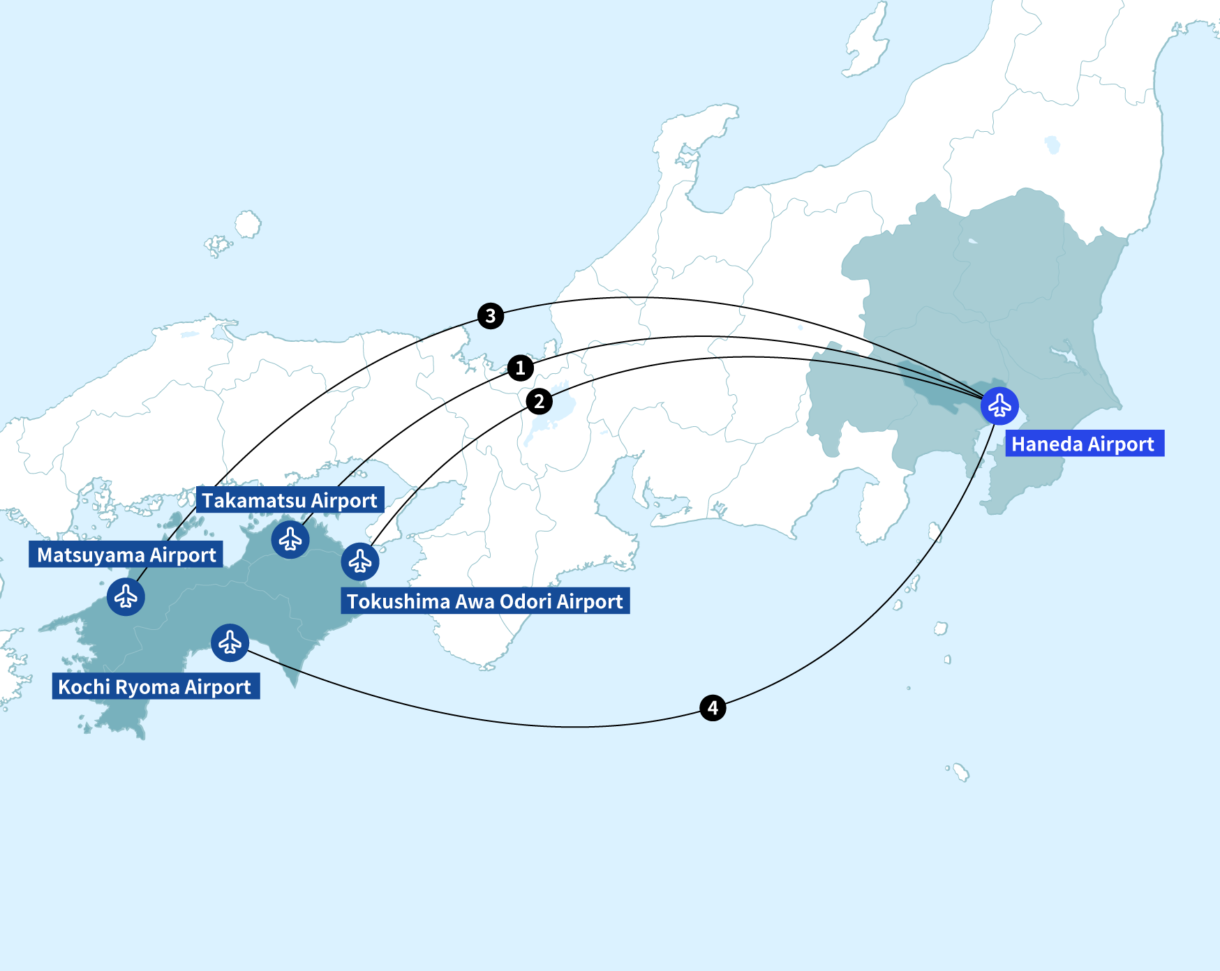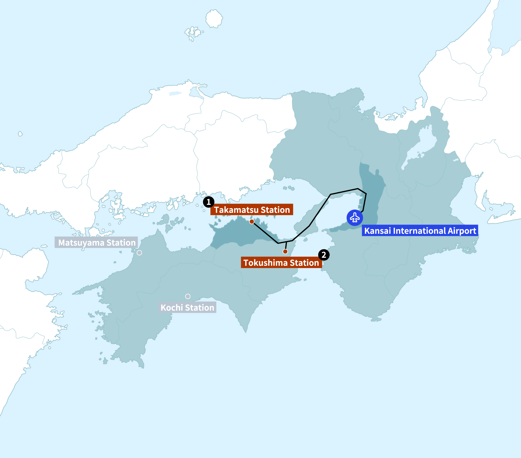 Use the airport shuttle buses bound for Takamatsu or Tokushima to get to Shikoku by highway bus.